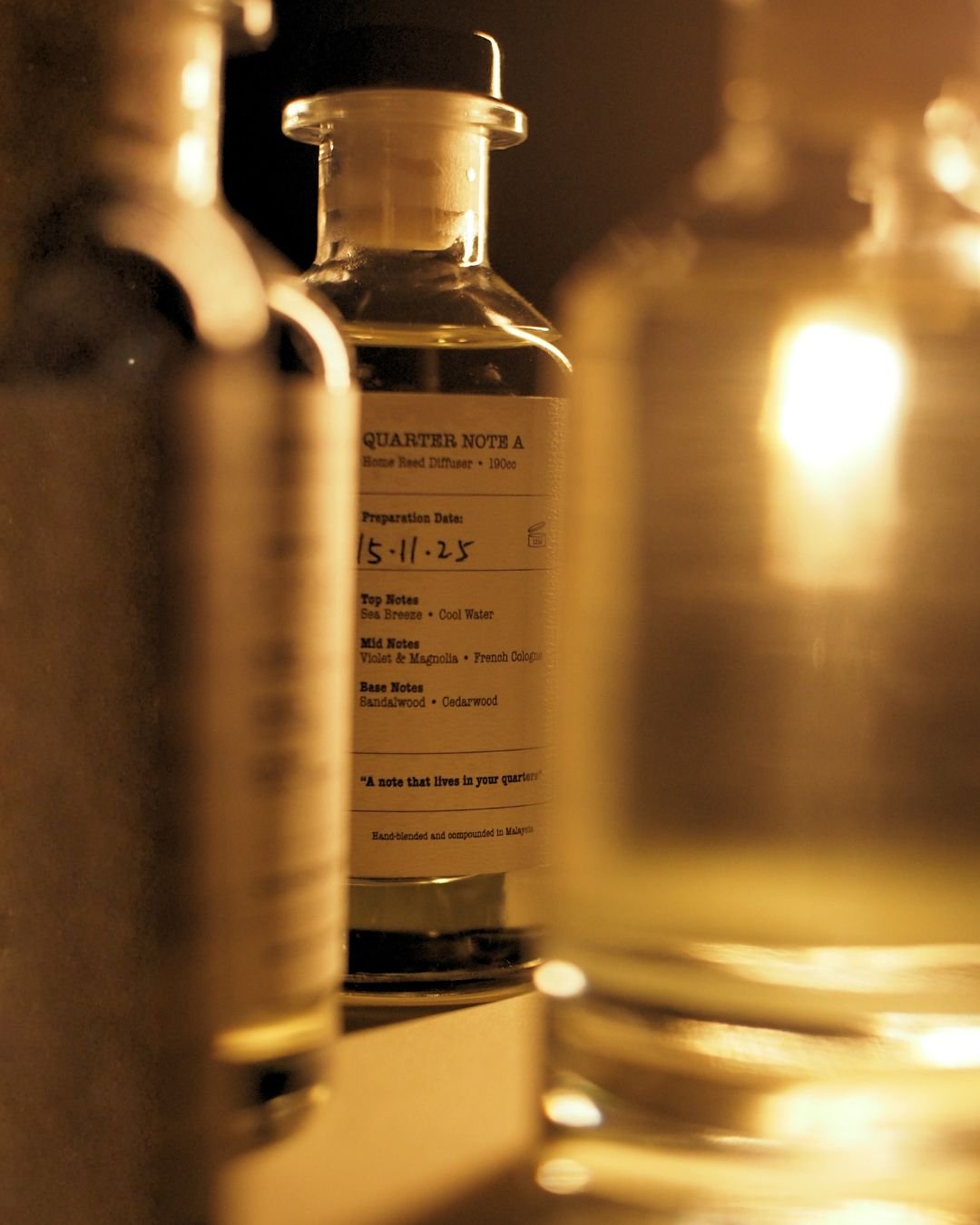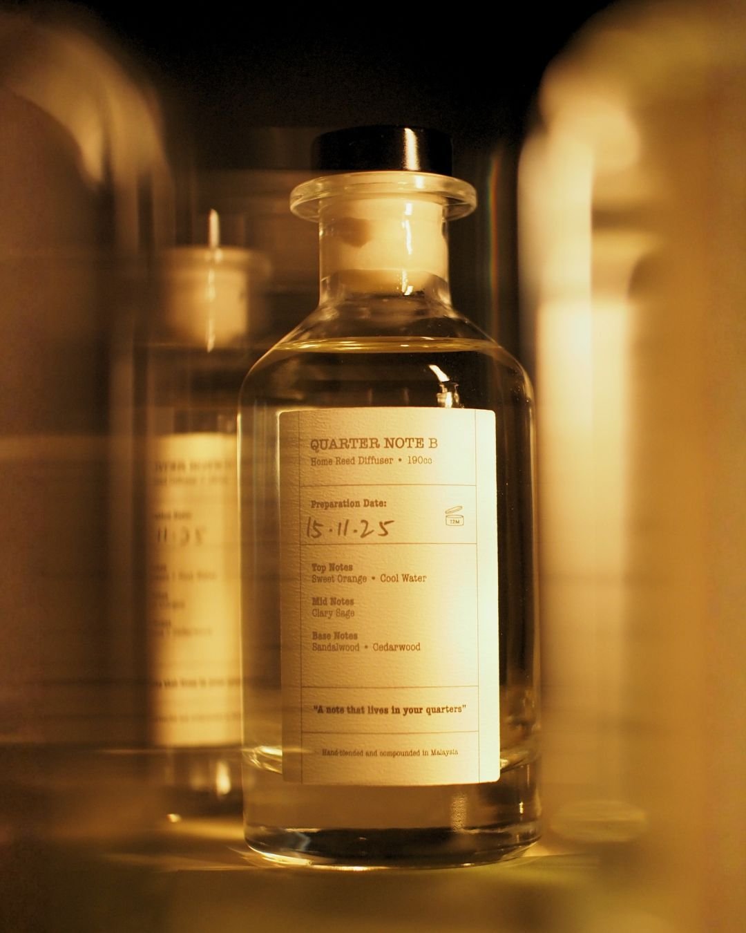 A bright burst of citrus meets calming herbal clarity, resting on warm woods.